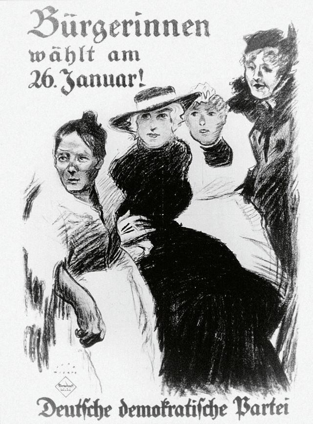 Der kommt nach vier Kriegsjahren 1918 tatsächlich, schuld sind allerdings nicht die Frauen, sondern die alten Eliten des Kaiserreichs. In der Novemberrevolution stürzt Kaiser Wilhelm II., am 12. November 1918 erscheint ein Aufruf der neuen politischen Führung mit dem Satz: »Alle Wahlen zu öffentlichen Körperschaften sind fortan nach dem gleichen, geheimen, direkten, allgemeinen Wahlrecht auf Grund des proportionalen Wahlsystems für alle mindestens zwanzig Jahre alten männlichen und weiblichen Personen zu vollziehen.« Der Kampf ums Frauenstimmrecht ist damit vorüber.