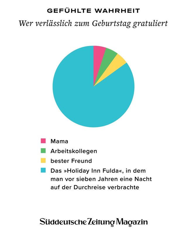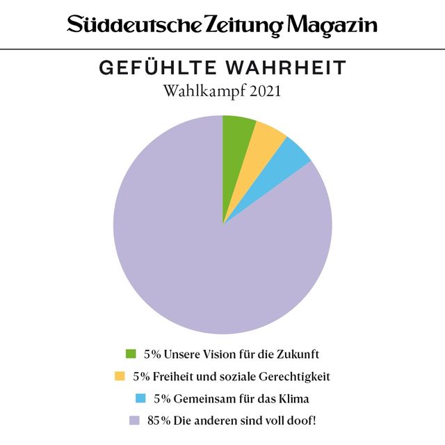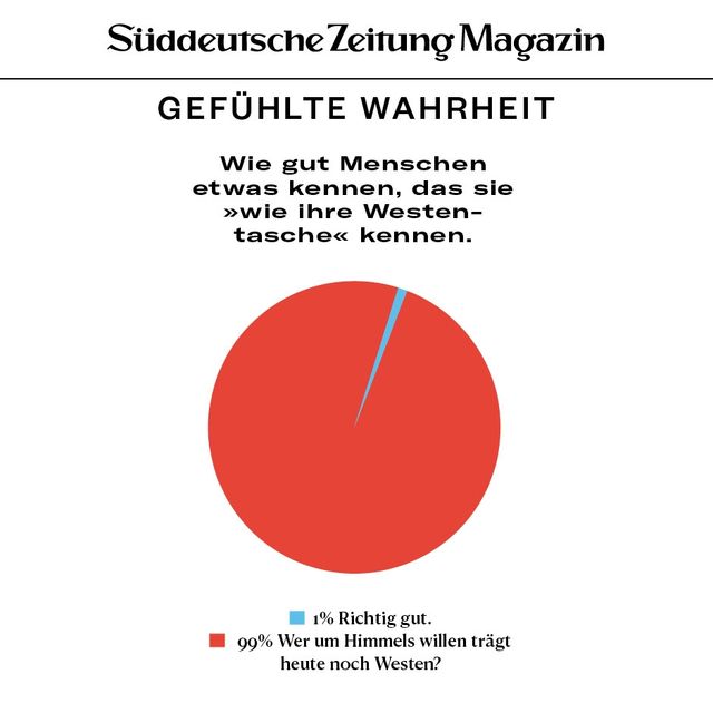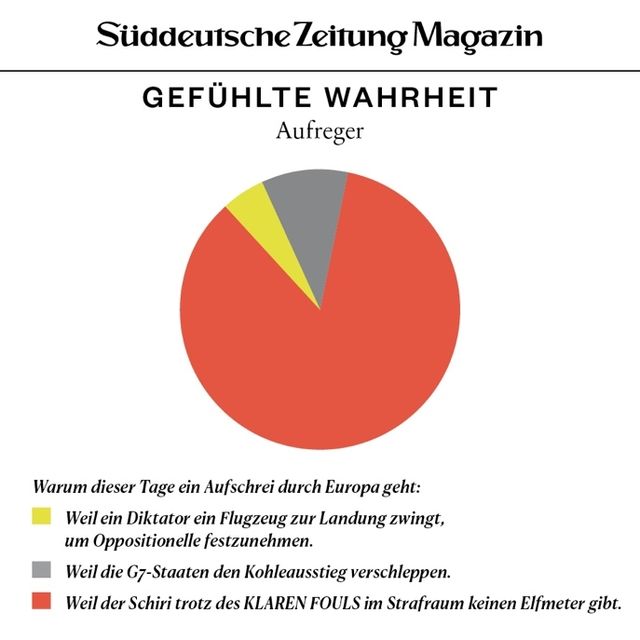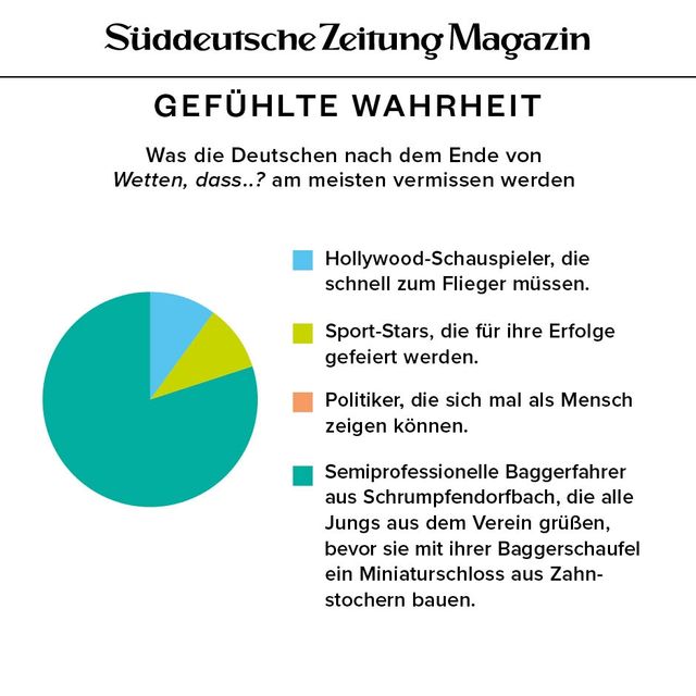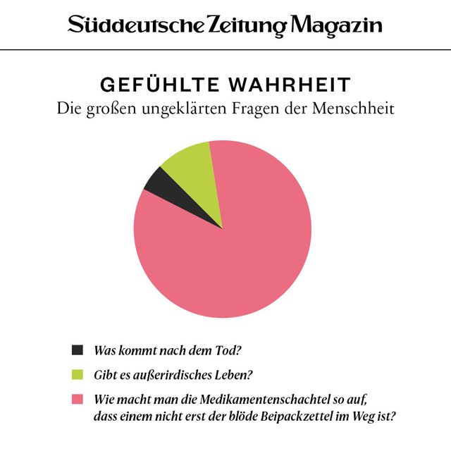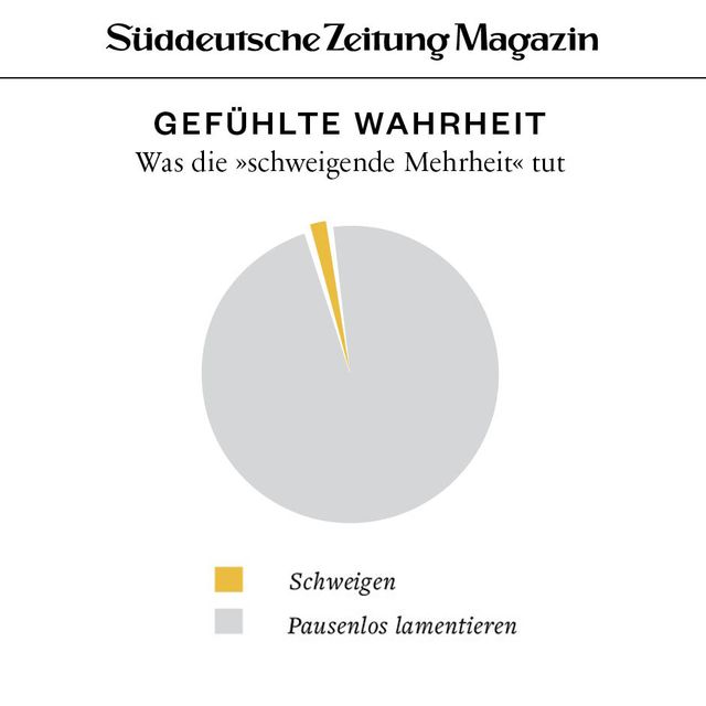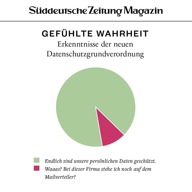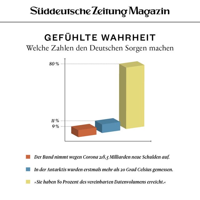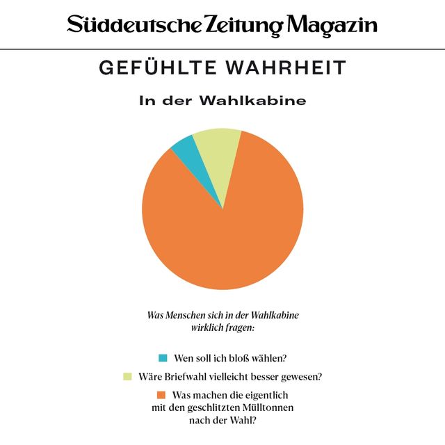 11. April 2018Gefühlte WahrheitGefühlte WahrheitJede Woche beschäftigen uns viele Fragen. Um die Gedanken zu ordnen, brechen wir sie herunter in Form von Torten, Balken und anderen statistischen Spielereien. Vorheriges Bild Nächstes Bild Noch mehr Gefühlte Wahrheiten finden Sie hier. Rechte am Artikel können Sie hier erwerben. Gefühlte WahrheitStartseite > Themen > Gefühlte Wahrheit > Gefühlte Wahrheit