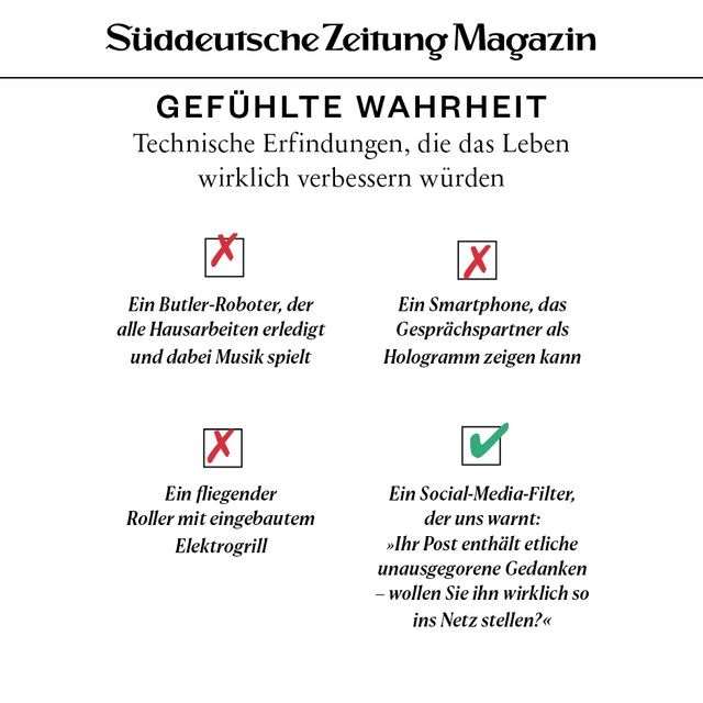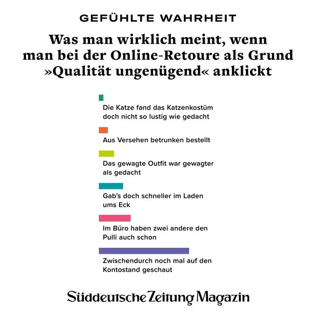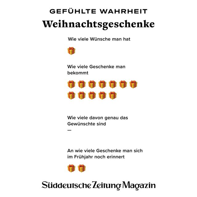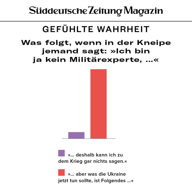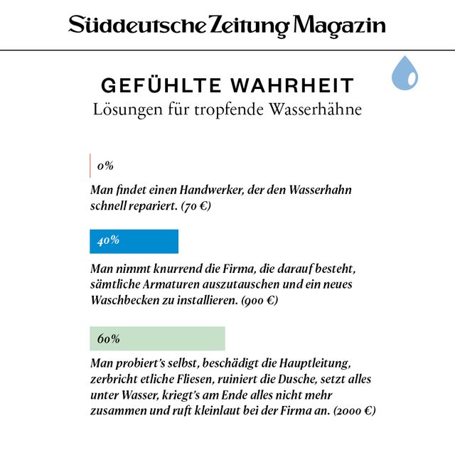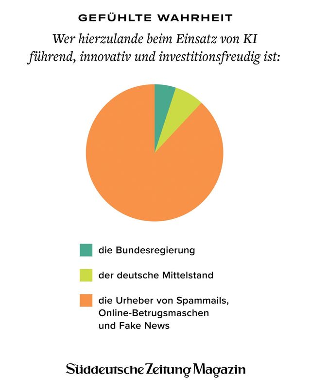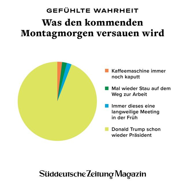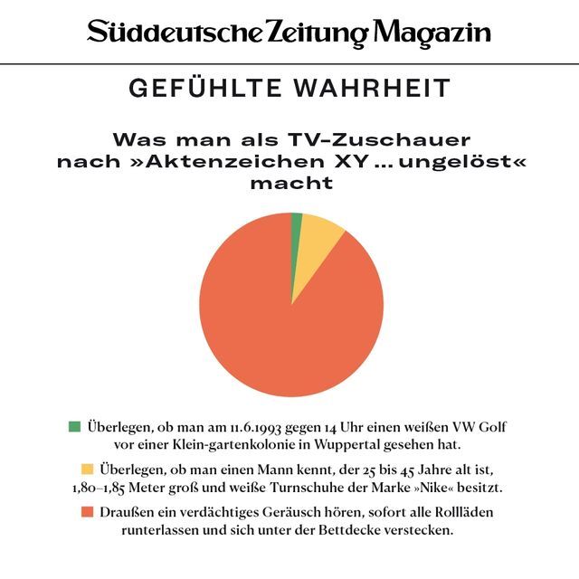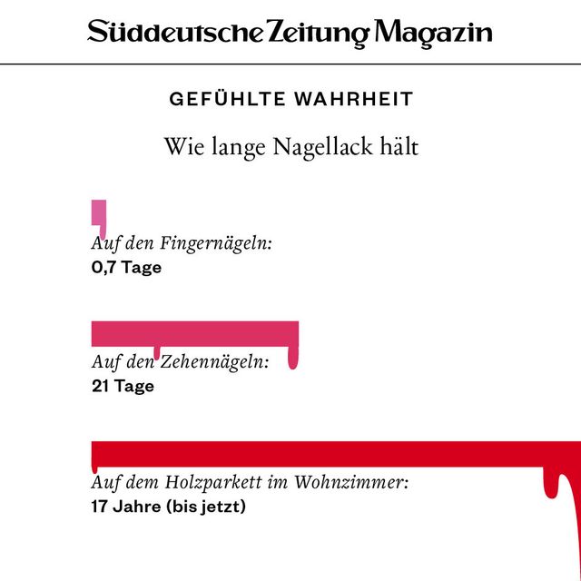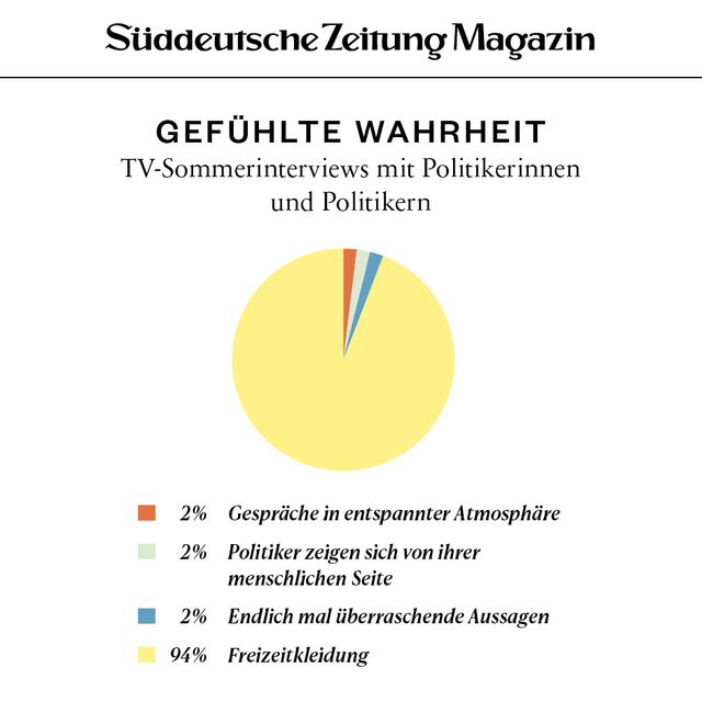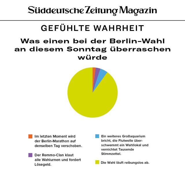 11. April 2018Gefühlte WahrheitGefühlte WahrheitJede Woche beschäftigen uns viele Fragen. Um die Gedanken zu ordnen, brechen wir sie herunter in Form von Torten, Balken und anderen statistischen Spielereien. Vorheriges Bild Nächstes Bild Noch mehr Gefühlte Wahrheiten finden Sie hier. Rechte am Artikel können Sie hier erwerben. Gefühlte WahrheitStartseite > Themen > Gefühlte Wahrheit > Gefühlte Wahrheit