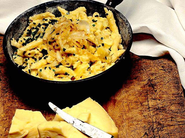 - 100 g geriebener Bergkäse Bergkäse, Käse