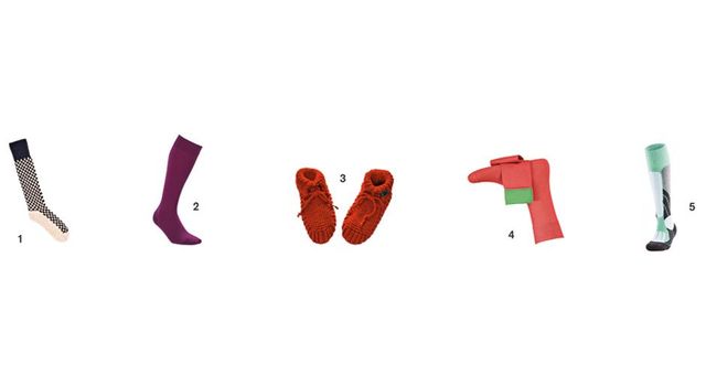 1 Kniestrümpfe von Marni 2 Modische Stützstrümpfe von Item m6 3 Kamin-Babysocken von MyOma 4 Herrensocken von Jungfeld 5 Pastellfarbene Skisocken von Falke