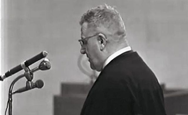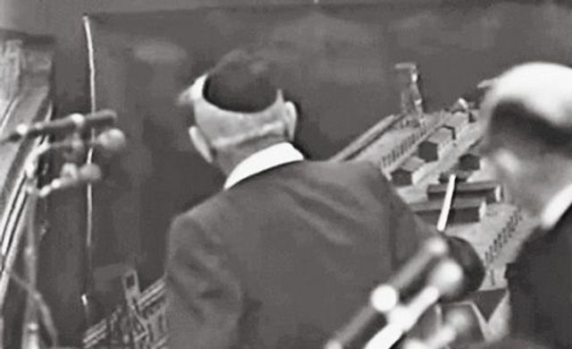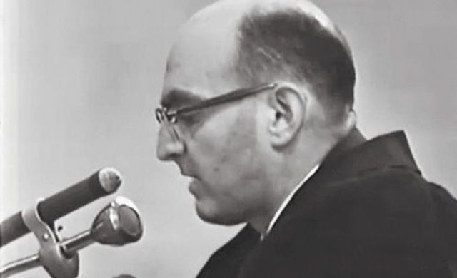 Der Staatsanwalt Gideon Hausner bei seinem Schlussplädoyer.