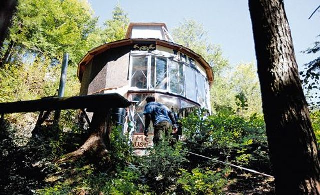 Früher war er Bauarbeiter. Vor zehn Jahren, abends nach der Arbeit, las er eine Annonce für dieses Waldgebiet in Vermont, auf dem er heute lebt: zehn Hektar nichts als Wald und Felsen, Vögel, Biber und Elche. Noch in der Nacht fuhr er von Boston Richtung Norden und kaufte den Fleck Erde. Heute steht darauf das runde Haus, das er bewohnt. Seine Freundin lernte er vor sechs Jahren während eines Florida-Urlaubs kennen, sie schmiss ihren Job als Kellnerin und zog zu ihm. Auch sie bastelt, am liebsten Handpuppen. Die drei Verpflichtungen in ihrem Leben teilen sie sich: Kinder erziehen, Grundwasser hochpumpen, alle paar Tage beim acht Kilometer entfernten Biobauernhof einkaufen gehen. Strom liefern die Solarpanele auf dem Dach. Mehr Alltag wollen sie nicht. Aber mehr Spaß geht immer.