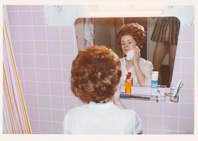 Außerdem Fotos: Margret vor und nach dem Sex, wie eine Madonna vor dem Goldspiegel beim Schminken, verführerisch im Körbchen-BH auf dem Bett oder mit weißen Netzstrümpfen im Opel Kapitän. Günter hebt auch Hotelrechnungen und Tramtickets auf.