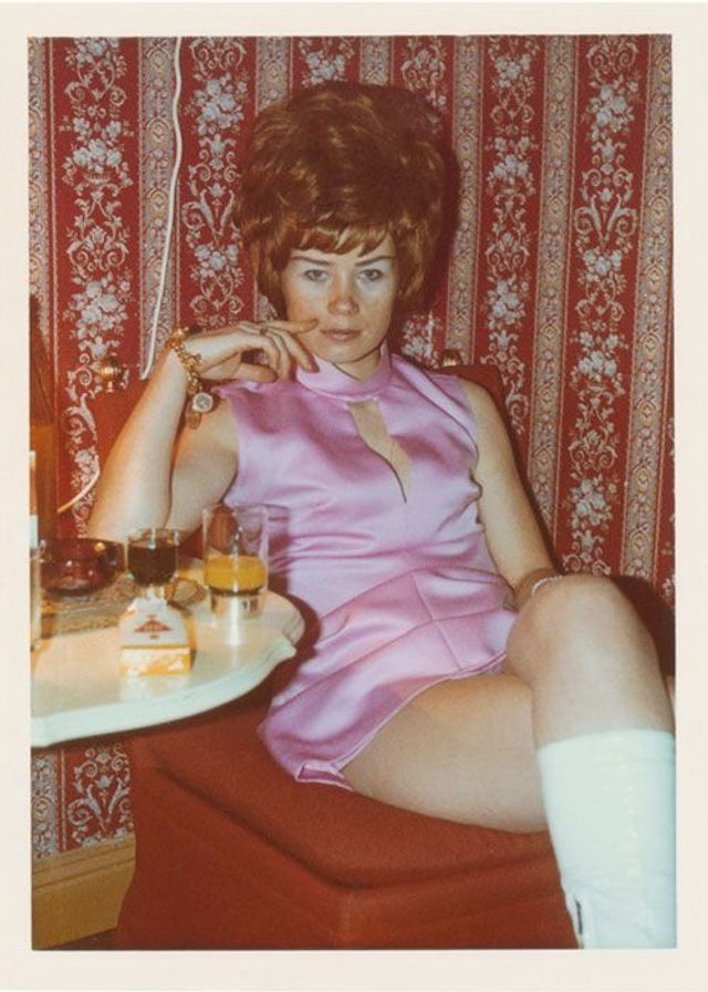 Günter richtet über seinem Geschäft eine zweite Welt ein. Sie liegt nur ein paar Treppen über Laden und Büro, manchmal begegnet ihm im Treppenhaus der Nachbar Erthel. »Peinlich«, schreibt Günter. Anders als im Baustoffgeschäft ist oben alles plüschig. Die Fotos geben Einblick: Für die Wände hat Günter Brokattapeten gewählt und Lüster mit Seidenschirmen. Die Dachwohnung hat eine Küche und eine Bar mit zwei Sesseln und Tisch. Auf einem Foto liegen rote Puschen auf dem Bett, die Günter für Margret offenbar besorgt und drapiert hat. Günter führt Protokoll über die Treffen: Nach dem Sex legt er »schöne Musik« auf und knipst das »Buntfernsehen« an, 1967 kam der erste Farbfernseher in den Handel, ungefähr 2400 DM. Sie rauchen HB-Zigaretten, trinken »Cappy«, einen Orangensaft, »mit MM-Sekt« und jedes Mal nach dem Sex, »Rücken- oder Spezialstellung«, macht er Fotos von ihr. Anschließend trinken sie in »Tonis Bar« oder Margret kocht selbst: Rouladen mit Dosenspargel und Gurkensalat.