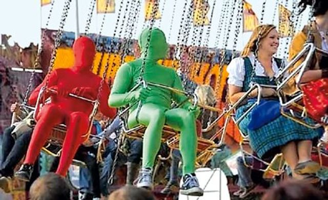 Ein weltweites Phänomen: Bei Rockfestivals, im Fußballstadion, bei Junggesellenabschieden und sogar beim New York Marathon – überall ist in letzter Zeit jemand dabei, der aussieht wie eine bunte, durchgeknallte Schaufensterpuppe. Und auch das Benehmen ist fast immer dasselbe: überschwängliches Getanze und Gegröle. In so einer Verkleidung lässt sich der größte Blödsinn anstellen, ohne die Furcht, dass verräterische Bilder auf Facebook landen. Statt peinliche Aufnahmen im Nachhinein aus dem Netz entfernen zu müssen, macht sich so ein Verkleideter prophylaktisch selbst unkenntlich.