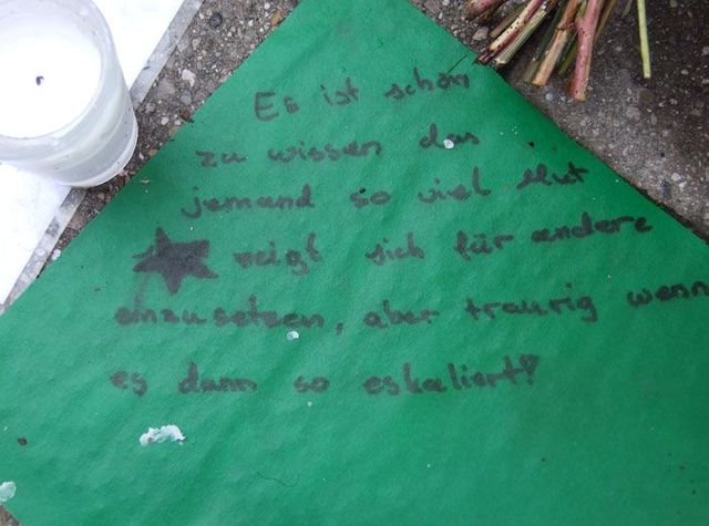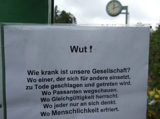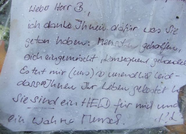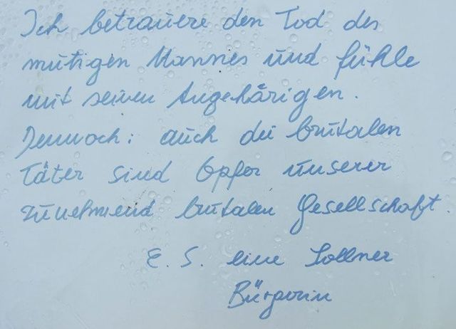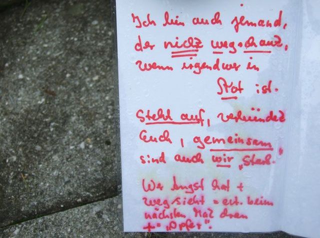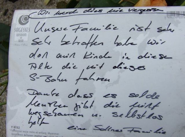 Seit einer Woche bringen Menschen Blumen und Kerzen zum S-Bahnhof Solln, an dem Dominik Brunner von zwei Jugendlichen ermordet wurde. Viele haben ihrer Fassungslosigkeit in Briefen Ausdruck verliehen. Wir haben einige fotografiert: Dokumente der Trauer, Wut und Hilflosigkeit.