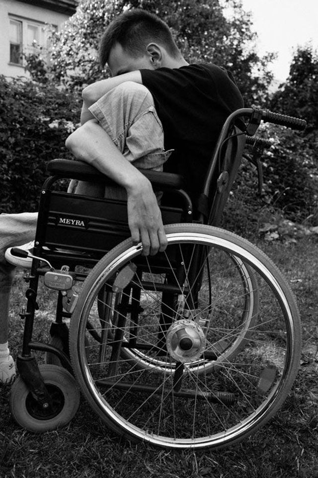 Trims zweite Möglichkeit ist der Platz auf der Couch im Wohnzimmer. Dort sitzt er oft den ganzen Tag und sieht deutsches Privatfernsehen. Zwischen Sofa und Computertisch gibt es für ihn nichts. Nur die Gefahr hinzufallen. Er braucht für die paar Meter durch den Gang mehrere Minuten und ist danach völlig außer Atem. Zitternd stellt er einen Fuß vor den anderen, während er sich mit beiden Händen an den Türrahmen und Wänden festhält. Dabei schwankt er ständig hin und her. Trim leidet an der Friedreich-Ataxie, ein seltener Gendefekt, der Gehirn und Rückenmark angreift. Bis 15 merkte er fast nichts davon. Dann ließ sein Gleichgewichtssinn nach, die Schritte wurden unsicher, er traf auf dem Fußballplatz den Ball nicht mehr. Seither verändert sich sein Körper, er wird bucklig, die Fußsohlen wölben sich, die großen Zehen neigen sich zur Seite. Mit 17 konnte er noch ein paar hundert Meter gehen, mit 18 sich noch ganz gut an einer Wand entlangtasten. In ein paar Jahren wird er nur noch liegen können – der Gleichgewichtssinn und die versteiften Gelenke werden das Sitzen nicht mehr erlauben. »Darauf hab ich so keinen Bock«, sagt er. Nach draußen geht er heute schon selten. Granit hilft ihm manchmal in den Rollstuhl, damit Trim im Garten in der Sonne sitzen kann. Auf die Straße? »Da schauen mich alle an, als wär ich ein Supertalent. Die überraschten Blicke der Passanten mag ich nicht.«