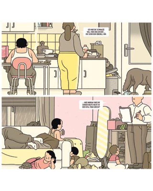 In der Regel führt er das Wort. Aber es gibt Ausnahmen. Soeben sagt Stefanie Kirsch: »Hab die Schnauze voll von Katzen. Die scheißen überall hin.« Aber wenn sie die beim Tierheim abgeben will, kostet es 100 Euro, da können sie sie auch gleich behalten. Das Aquarium ist bereits abgeschafft. Und auch die Schildkröten. Sogar die Hunde. Frau Kirsch achtet, den Hinweisen des Jugendamtes folgend, neuerdings sehr auf Sauberkeit in der Wohnung. Es gab eine Zeit, da hatte sie die ein bisschen aus dem Blick verloren.