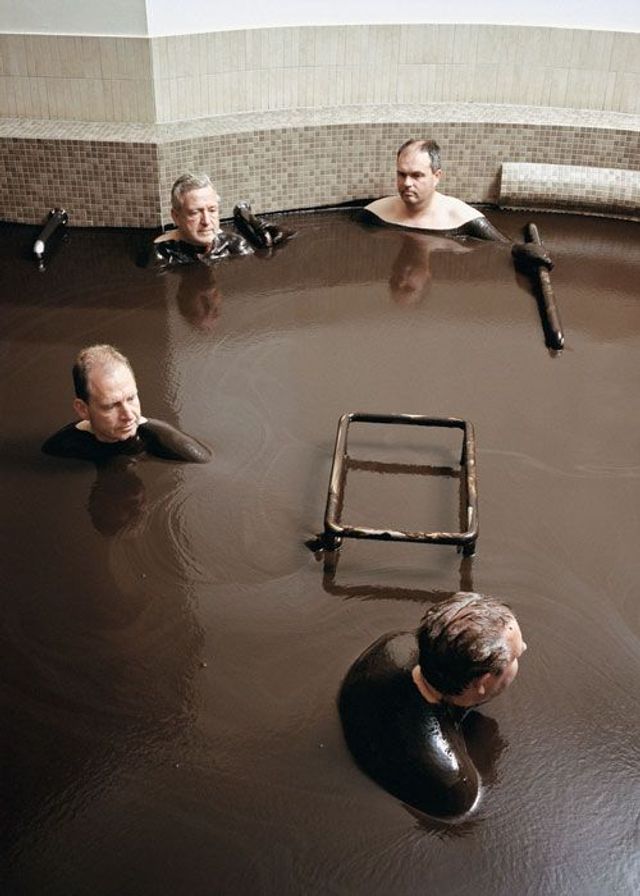 Der Fotograf ließ seine Serie von Nachtaufnahmen liegen und begann, Kurorte zu besuchen. Bad Wildungen. Bad Salzungen. Bad Kissingen. Er streifte durch die Kurparks Dutzender Orte, fotografierte Heilstollen und Moorbäder, Wandelhallen und Gradierwerke, Konzertpavillons und Kneippbecken. Jeder Kurort war verschieden, es gab Sole-, See-, Moor- oder Thermalheilbäder, aber bald kam es Krack auch beim Besuch ihm noch unbekannter Bäder vor, als treffe er einen alten Freund. Da war der Kurpark, da die Heilmitteleinrichtungen, da die Menschen, die auf Heilung hofften.