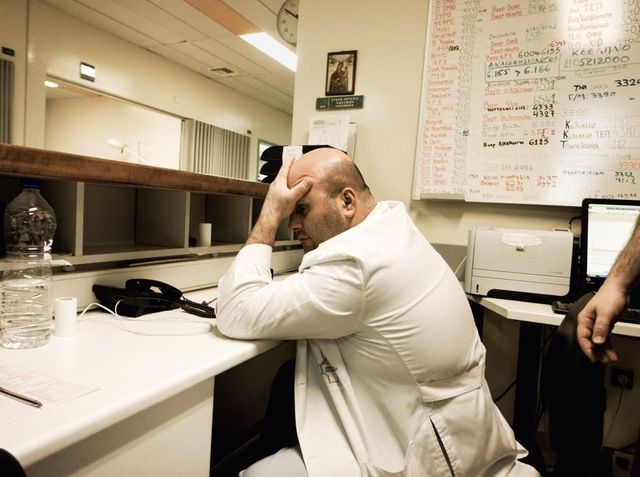 Kiparisia Karatzidou, Oberärztin im Papageorgiou, resolut und erfahren im Umgang mit ihren Patienten, antwortet auf die Frage, ob irgendetwas gut läuft im griechischen Gesundheitssystem, zunächst mit zusammengekniffenen Augenbrauen. In etwa so, als hätte man ihr gerade einen schlechten Witz erzählt. »Nein, nichts«, sagt sie. »Ich erlebe immer mehr Patienten, die erst zu uns kommen, wenn sie keinen anderen Ausweg mehr sehen oder ihre Krankheit schon zu weit fortgeschritten ist. Etwa Asthma-, Zucker- oder Krebskranke. Ich erlebe immer mehr Patienten, vor allem Mütter mit ihren Kindern, die keine Krankenversicherung mehr haben und deshalb nur noch zu uns kommen können, weil wir in der Notaufnahme die Einzigen sind, die sie gratis behandeln. Wäre dieser Job nicht zu meiner täglichen Routine geworden, würde ich jetzt losheulen. Aber ich erspare Ihnen das.«