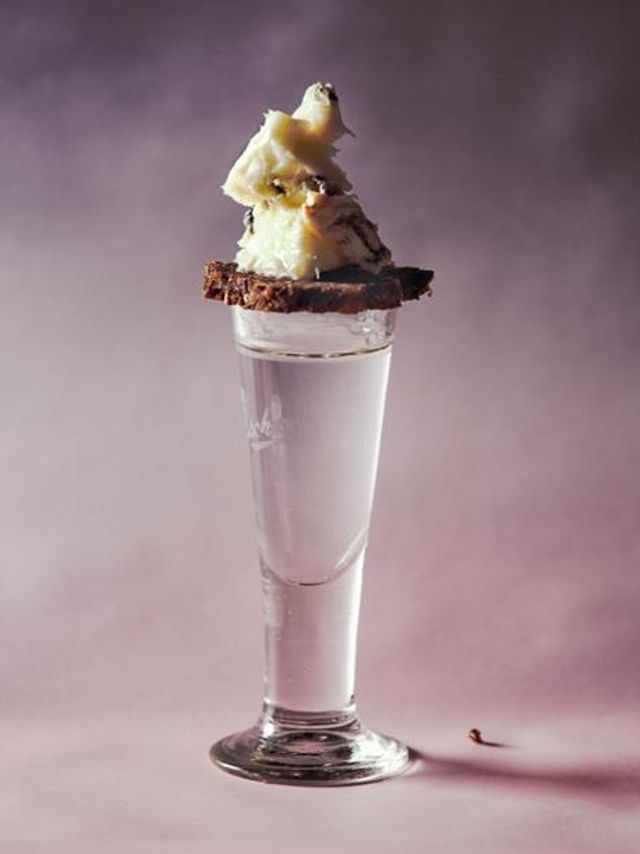 Man muss gerade in Hamburg natürlich aufpassen, wenn man den kleinen, auffälligen Drink draußen zu sich nimmt, denn sollte eine Möwe vorbeigesegelt kommen, wird sie sich vom Himmel stürzen, und schon sind der Pumpernickel und der Käse weg. Dann empfehle ich, den Wodka zu genießen und zu warten, bis die Möwenbeute in transformierter Form zur Erde runterfällt, denn darauf ist Verlass, auch in diesen unsicheren Zeiten.