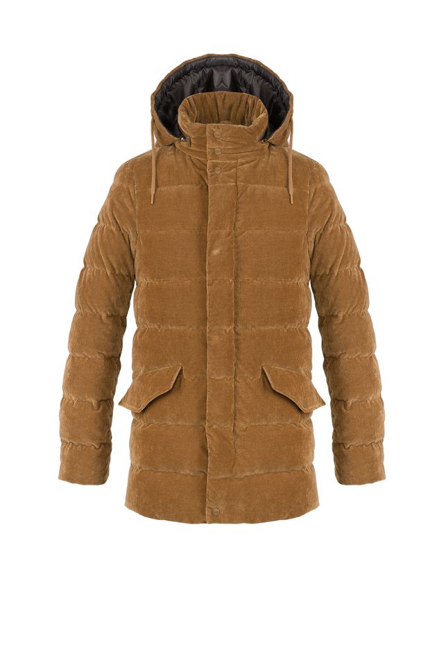 Eine der größten Herausforderungen des Winters ist es, bei Minusgraden nicht zu frieren - und dabei auch noch gut auszusehen. Geht nicht, meinen Sie? Das Modelable Herno möchte Sie mit diesem Männer-Daunenparka aus karamellfarbenem Samt davon überzeugen, dass wärmende Kleidung auch stylisch sein kann. Praktisch, falls es nicht windet oder schneit: Die Kapuze lässt sich einfach im Stehkragen verstauen.