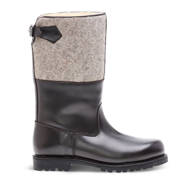 Das Stiefelmodell »Maronibrater« ist innen mit Lammfell ausgekleidet und außen aus hochwertigem Juchtenleder gefertigt. Der Filzschaft sorgt für einen edlen Look, der sich nicht nur auf Weihnachtsmärkten gut macht, sondern auch – der Bergprofilsohle sei Dank – beim Landspaziergang.