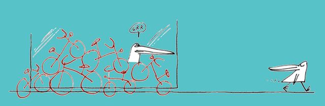 »In vielen Schaufenstern hängt ein ›Fahrräder abstellen verboten‹-Schild. Aber das kann doch nicht der Ladenbesitzer festlegen, oder? Ich kann verstehen, dass es Schaufenster attraktiver macht, wenn sie nicht zugeparkt sind. Aber so einem anmaßend-aggressiven Verbot möchte man sich auf öffentlichem Grund doch auch nicht unterwerfen. Was würden Sie mit Ihrem Fahrrad tun, wenn in der betreffenden Einkaufsstraße der Parkraum knapp ist?« Anonym, per Mail