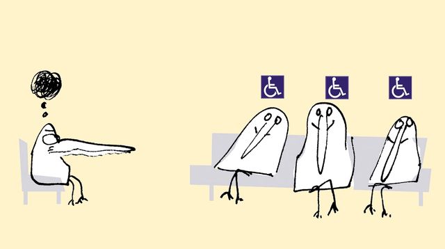 »Ich wohne in Berlin, fahre täglich Fahrrad und nehme dieses neuerdings auch in S-Bahnen mit, um Zeit zu sparen. Es gibt extra ausgewiesene Zonen, die für RollstuhlfahrerInnen, Kinderwagen und Fahrräder freizuhalten sind. Oft sehe ich dort Passagiere sitzen, die nichts davon mit sich führen – obwohl im Rest der S-Bahn ausreichend freie Sitzplätze wären. Ich beobachte oft, dass berechtigte Passagiere, wie ich auch, sich daraufhin mit instabiler Haltung woanders hinstellen. Ich bin über das anscheinend empathielose (und fehlerhafte?) Verhalten meiner Mitmenschen, die sich auf den erstbesten Platz setzen, verärgert. Soll ich sie regelmäßig ansprechen und möglicherweise ein Streitgespräch vom Zaun brechen oder hoffen, dass sie von selbst draufkommen?« Viola K., Berlin