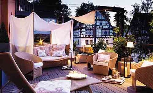 Frankenberg liegt zwischen Kassel und Marburg, also mittendrin in Grimms Märchenland: Zur Schule gingen die Brüder in Kassel. Studiert haben sie in Marburg, wo sie später ihre Märchen sammelten. Zumindest in Frankenberg sieht es noch ziemlich genauso aus wie zu Grimms Zeiten: Ein windschiefes Fachwerkhaus reiht sich ans nächste, das Kopfsteinpflaster glänzt in der Sonne, das Rathaus von 1509 trägt gleich zehn Türme – allerschönstes Modelleisenbahn-Deutschland! Nicht weit entfernt liegt der größte Buchenwald Europas, seit letztem Jahr UNESCO Weltnaturerbe. Ein ganz besonders hübsches Hotel gibt es auch noch – es ist so was wie ein Stadtteil von Frankenberg, weil es sich über sechs entkernte und neu ausgebaute Fachwerkhäuser rund um den historischen Marktplatz erstreckt. Im Hotel »Die Sonne Frankenberg« sitzt man in Stuben oder im Weinkeller, mitteldeutsche Trachten hängen an der Wand. Trotz der Tradition zeigen die Macher ihren Hang zur Moderne – zur documenta in Kassel haben sie ein Paket geschnürt: zwei Übernachtungen, ein Abendessen und einen Audi mit Hybridantrieb für die beiden Tage.