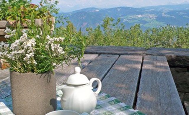 Danach: Wasser abschütteln, Liege zurechtrücken, Handtuch unter den Kopf. Ein kleines Mädchen sagt noch, dass sie hier auch einmal heiraten will, dann trägt uns die Ruhe davon. Später sitzen wir im Biergarten an breiten Holztischen, eine Kellnerin bringt Rhabarberkuchen mit Schokoladensauce aus der Slow-Food-Küche – alles regional, saisonal –, und noch immer starren wir hinaus ins Tal, hinunter auf Bozen, hinüber zur Rosengarten-Gruppe und deren schneeumkränzten Gipfeln. Der Blick bleibt uns, auch aus dem charmant eingerichteten Zimmer, auch beim Frühstück in der Panoramastube. »Ich habe gehört, Sie hatten eine Autopanne auf dem Weg hierher, brauchen Sie Hilfe?«, fragt dort Josef Schrott, der Besitzer des Gasthofs. Autopanne? Wir? Ach so, ja. Hilfe? Nein, wirklich nicht. Alles ist gut.