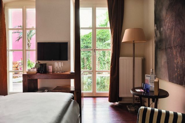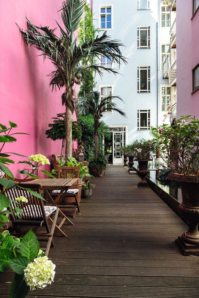 Wir kamen maximal voreingenommen in dieses Hotel. Früher hatte in diesem Altbau in Prenzlauer Berg nämlich das »Ackselhaus« residiert, unsere Lieblingsherberge für Freunde und Familie, als wir noch selbst in Berlin wohnten. Einmal hatten wir hier sogar unseren Hochzeitstag verbracht, wegen der romantischen Zimmer. Vor allem aber gab es diesen Innenhof mit Goldfischteich, Blumenkübeln und Wintergarten mit Korbmöbeln, in dem wir als junge Eltern in einen komatösen Mittagsschlaf fielen. Jetzt, Jahre später und selbst zu Besuch in Berlin, mussten wir feststellen, dass Name und Besitzer gewechselt hatten. Das »Ackselhaus« ist nebenan noch mit einigen Zimmern vertreten, doch der größere Teil heißt nun »Belfort« und gehört zur rasant expandierenden Hotelkette »Numa«, die viel auf Selbsthilfe per KI und App statt auf Personal setzt. Das wollen wir aus Prinzip nicht gut finden. Aber Preis und Lage am Wasserturm sind immer noch unschlagbar.