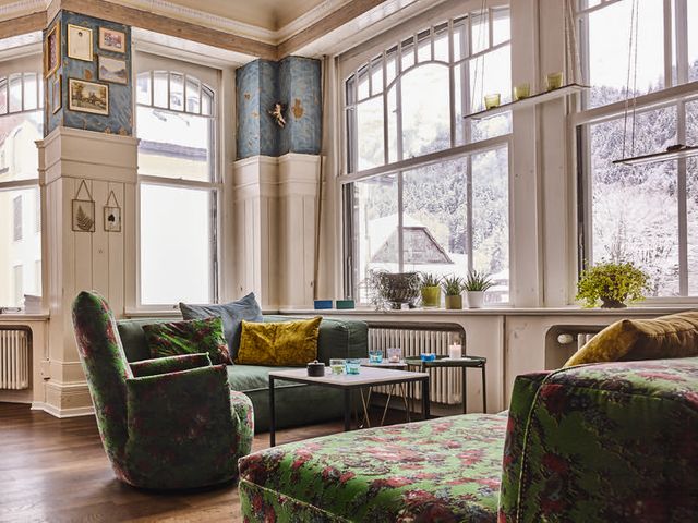 Es ist ruhig hier. Den Verführungen des Massentourismus hat der Ort weitestgehend widerstanden. Das auf 3000 Metern gelegene Skigebiet des Dachbergs hat nur fünf Liftanlagen, alles Schlepplifte. Die Pisten sind herrlich leer, die Rodelbahn ist unberührt. Die einzige Begegnung mit vielen anderen Menschen hat man in Vals beim Besuch der vom Star-Architekten Peter Zumthor entworfenen Therme. Die Therme war es auch, die Ruth Kramer und Thomas Schacht auf einer Motorradreise durch die Schweiz vor rund zehn Jahren zum ersten Mal nach Vals brachte. Sie blieben, kauften das Haus am Fluss und bauten es zu einer Pension mit vier gemütlichen Zimmern und zwei Bädern um. Die Bäder teilt man sich mit den anderen Gästen.