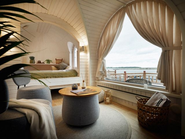 Neunzehn dieser Urlaubs-Iglus stehen nun zwischen blitzenden Yachten und rostigem Industriecharme am Noblessner Hafen. Nicht alle Iglus sind zum Schlafen da, fünf von ihnen sind Saunen, zwei kann man zum Arbeiten mieten. Es gibt Zweier-Iglus im Tiny-House-Format und Familien-Iglus, in denen bis zu fünf Leute unterkommen können, aber alle sind mit großen Fenstern, privater Terrasse und natürlich dem Nötigen wie Bett, Küche, Bad ausgestattet. Einige bieten Meerblick, und es fühlt sich schon unwirklich an, nach der Saunarunde am Morgen ins eiskalte Tallinner Hafenbecken zu tauchen.