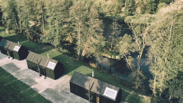 Lagerfeuerfreiheit, dieses Wort beschreibt die Stimmung im »Adventure Camp Schnitzmühle« im Bayerischen Wald recht gut. Weil sich hier, an der Flussbiegung des Schwarzen Regens, quasi alle treffen, die den Sommer am liebsten unter freiem Himmel verbringen. Einst eine Mühle, später ein Gasthof, ist die »Schnitzmühle« heute eine Mischung aus Glamping, Boutiquehotel und Naturidyll. Man kann hier zelten oder den Wohnwagen auf einem der 60 Stellplätze parken. Es gibt aber auch Zimmer mit Hotelkomfort, und etwas abseits stehen Ferienhäuser. Drinnen bietet unser Haus neben viel Sichtbeton und Kamin auch ein gelbes Badezimmer, das aussieht, als wäre es aus einem Wes-Anderson-Film, draußen hat es, wie alle Häuser, eine Terrasse, hinter der direkt der Fluss rauscht. Der erzeugt Aussteigerromantik, aber auch Strom für das hauseigene Wasserkraftwerk. Außerdem gibt es im Adventure Camp zwei Spas mit Saunen und Massagen und etwas versteckt im Wald einen Badesee. Überhaupt ist für fast alles gesorgt: Lebensmittel und frisches Brot bekommt man im Laden oder rund um die Uhr aus futuristischen Automaten. Man kann sich zu Kanutouren überreden lassen, reiten gehen oder im »Thai Bay«-Restaurant einkehren, wo bayerische Klassiker auf thailändische Aromen treffen. Aber egal wofür man sich entscheidet, am Ende führen fast alle Wege durch den Bayerischen Wald. Vorbei an Baumstümpfen, die aussehen wie Naturgeister – sie scheinen den Campern wohlgesinnt.