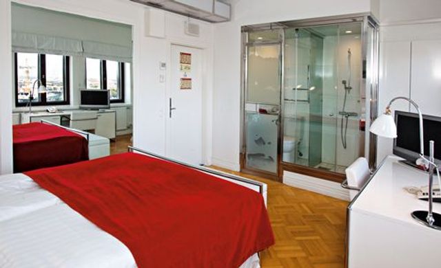 Zu meinen Lieblingsplätzen in Helsinki gehört die kleine Dachterrasse vor der »Ateljee Bar«, auch wenn sie in den finnischen weißen Nächten rappelvoll ist. Sie ist ganz oben im Hotel »Torni« (auf Deutsch: Turm), Helsinkis einzigem Wolkenkratzer. Von hier hat man einen Blick über die ganze Stadt bis zur Ostsee. In dem 14-stöckigen Hotel, das 1931 im Art-déco-Stil eröffnet und 2006 renoviert wurde, kann man zwischen Jugendstil-, Art-déco- und Funktionalismus-Zimmern wählen. Ein Glück für das »Torni«, dass Helsinki in diesem Jahr »Welthauptstadt des Designs« ist: Es befindet sich mitten im Design District mit den Showrooms so weltberühmter Firmen wie Artek (Möbel von Alvar Aalto), Iittala (Glas) und Marimekko (Stoffe). Auch schön: Alle Museen für Kunst und Architektur liegen sozusagen um die Ecke.