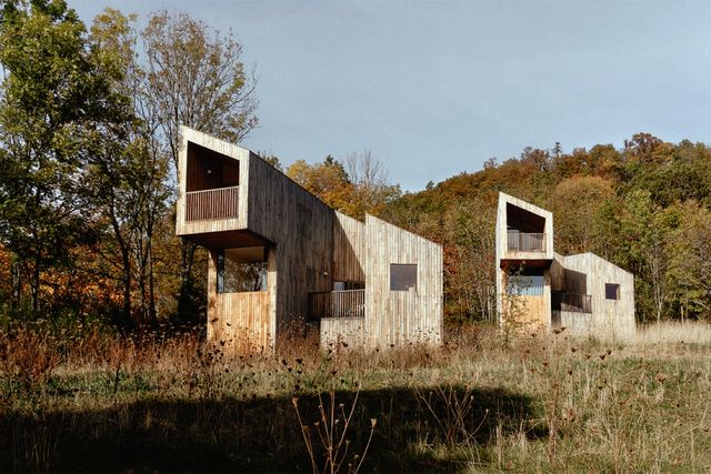 Fachwerkhäuschen, Gassen, Weinstuben: So kennt man das Elsass, und genauso sieht es auch in Breitenbach bei Colmar aus. Fährt man aber die Bergstraße oberhalb des Dorfes weiter hinauf, landet man in einer Art Skulpturengarten moderner Architektur: Über den Hang verteilen sich 14 Gebilde aus Holz und Glas – das »48° Nord Landscape Hotel«.