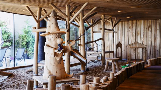 Jetzt Achtung, bitte: Dieses Hotel gibt es in echt. Das »Familiamus« im Pustertal wurde erst im Dezember 2022 eröffnet, ein ambitioniertes Familienprojekt an einem der schönsten Flecken Südtirols. Das Haus versteht sich ausdrücklich nicht als »Kinderhotel«, sondern als »Familienhotel«, in dem alle Altersgruppen zu ihrem Recht kommen. Dieses Versprechen löst das »Familiamus« ein. Neben den zahllosen Indoor- und Outdoor-Vergnügungen für Kinder aller Altersklassen bietet das Hotel auch Erwachsenen jede Menge schöner Orte. Wer nicht rutschen mag, kann den Aufzug nehmen, wer keine Lust auf Burger hat, kann aus wirklich ausgezeichneten Menüs wählen. Das Hotel hat fünf Sterne, günstig ist es nicht. Aber durch das All-inclusive-Angebot relativiert sich der Zimmerpreis zumindest – es lohnt sich zu rechnen, was man in anderen guten Hotels an Nebenkosten hat. Hier ist nahezu alles im Preis inbegriffen, auch der Nachmittagskaffee oder der Wein am Abend.