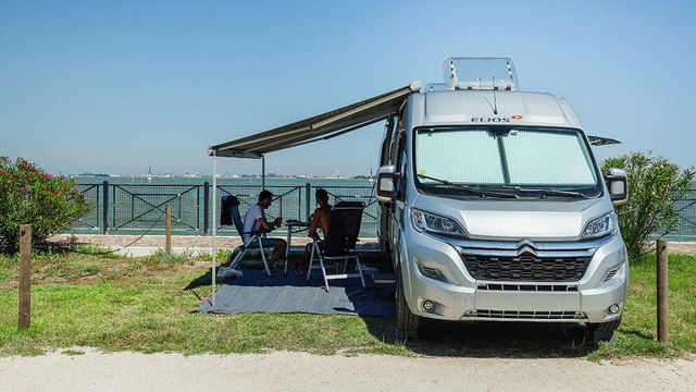 Eben, darum doch »Camping Fusina«, entworfen vom ziemlich bekannten Architekten Carlo Scarpa – das passt zur Architekturbiennale, die noch bis Ende November in Venedig stattfindet. Der Rest ist wie fast überall: Pool (mit Badekappenpflicht), kleiner Supermarkt, Toilettenhäuschen, Duschhäuschen, Pizzeria, WLAN. Nachteile gibt es auch, die Anfahrt durch mehrere Industriegebiete zum Beispiel und die Lage direkt am Wasser, jedoch ohne Strand. Aber der Blick auf Venedig ist unschlagbar, gleich beim Haupteingang pendeln ganzjährig Boote in diese unfassbare Stadt, im Sommer bringen sie einen auch zu einem Sandstrand. Und wer nach links geht, am Bootsanleger vorbei, steht bald in einem der kleinen, hübschen Dörfer des Veneto und weiß: eben doch alles richtig gemacht.