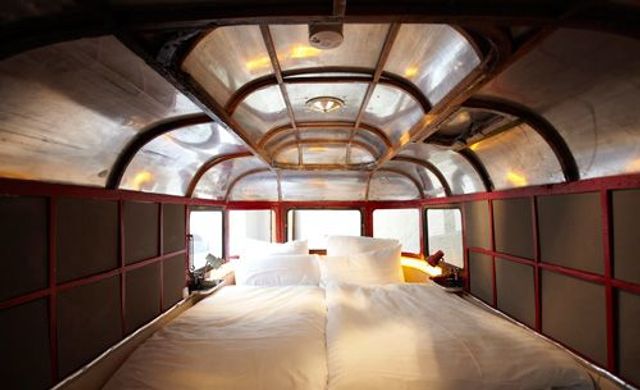 Ich bin meinen Eltern für immer dankbar für meine großartige Kindheit. Bis auf eins: die FKK-Campingurlaube. Es ist nicht leicht, beim Fußballtraining nach den Ferien der einzige Junge unter der Dusche ohne weißen Badehosen-Abdruck zu sein. Gut, die Achtzigerjahre waren anders, aber bis heute verursachen Wohnwagen bei mir ein leichtes Schamgefühl. Und damit zum »Hüttenpalast«: Der Gag dieses Hotels ist eine große Halle, in der man in liebevoll restaurierten Wohnwagen der Sechziger- und Siebzigerjahre oder in niedlichen Holzhütten schlafen kann. Darin ist wenig Platz, aber viel Atmosphäre: Campinggemütlichkeit mitten in der Großstadt. Ich habe mich – das Schamgefühl – für eines der Hotelzimmer im »Hüttenpalast« entschieden: die sind groß, schlicht, chic, ohne Fernseher, mit großer Couch für ungeplante Mitschläfer. Die »Hüttenpalast«-Besitzer sind nett, es gibt einen gemütlichen Innenhof, gutes Frühstück, Leihräder. Und 65 Euro für zwei im Wohnwagen ist fast Zeltplatzniveau.