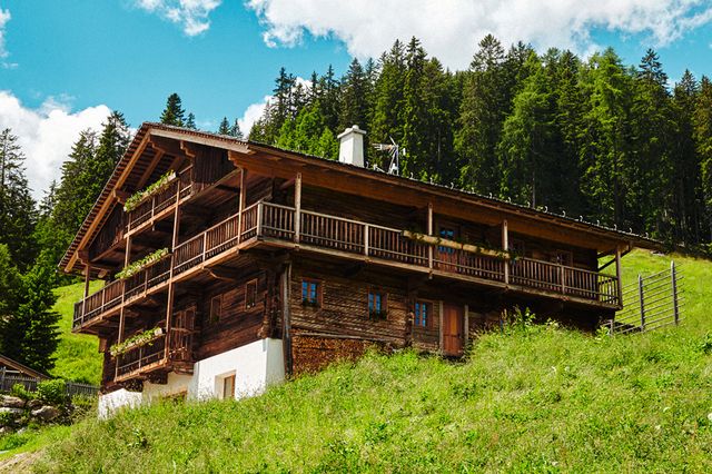 Herr Vitus, so hieß der erste urkundlich erwähnte Besitzer des rund 500 Jahre alten Veidlerhauses im hintersten Gsieser Tal. Viele Generationen später ist das wichtig geworden, weil die Abbruchverfügung für den Hof schon ausgestellt war. Doch der Bergführer Paul Sapelza und seine Frau Lisl Bachmann, die als Letzte den Hof bewohnten, wollten das so nicht hinnehmen. Sie starteten eine Rettungsaktion, mobilisierten Nachbarn, Freunde, den Bürgermeister und Gelder von der EU, um das Gebäude abzutragen und 100 Meter bergwärts wiederaufstellen zu lassen. Die Erforschung der historischen Bausubstanz brachte den Namen Vitus zum Vorschein. Und nach ihm ist nun das alte Haus am neuen Ort benannt. Fast alles wurde erhalten: Die 487 Balken des Hauses wurden durchnummeriert und dann wieder zusammengesteckt, genauso wie die wertvollen Zirbenböden und die getäfelten Decken. Vier Ferienwohnungen sind so entstanden sowie ein Doppelzimmer in der einstigen Kornkammer – allesamt mit einem fabelhaften Blick auf die Riepenspitze, das Hochkreuz und die Gailspitze. Hat man die entsprechenden Bergbesteigungsmühen hinter sich, trifft man sich in der Kräuterküche, um mit Lisl und Paul auf dem alten Holzherd Melchermuas zu kochen: Mehl, Milch, sehr viel Butter. Und keine Sorge: Obwohl im Hof das meiste beim Alten geblieben ist, müssen die Gäste nicht, wie Lisl und Paul noch in den Neunzigerjahren, mit einem Plumpsklo vorliebnehmen.