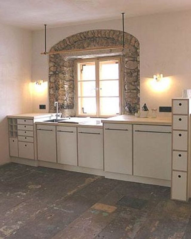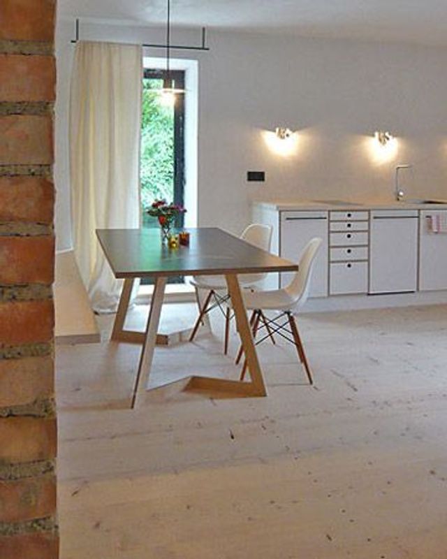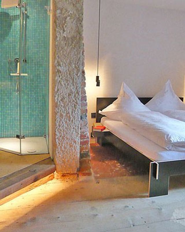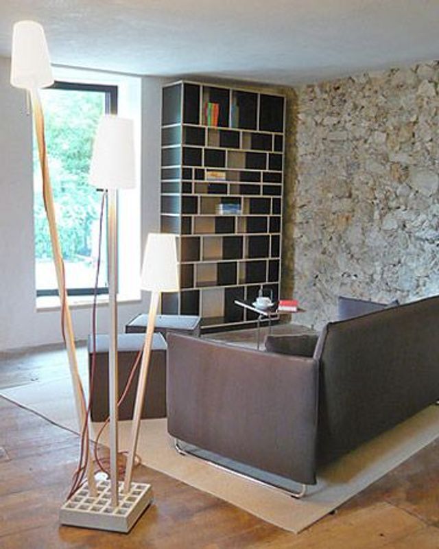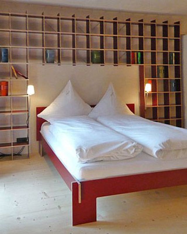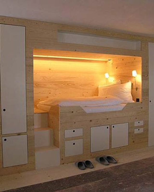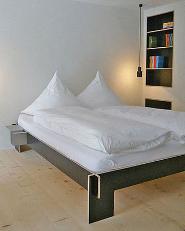 Wahnsinn deshalb, weil wohl niemals ein geschäftstüchtiger Hotelier auf die Idee gekommen wäre, eine Bauruine in Aschau im Chiemgau, die einst Bäckerei, russische Gaststätte und Schullandheim war, in eine Design-Herberge zu verwandeln. Die 13 Appartements der berge zeigen die Moormannsche Sicht auf die Dinge: Versucht man den Stil zu beschreiben, dann liegt er irgendwo zwischen zweckmäßiger Bodenständigkeit und sympathischer Spinnerei. Die Holzfußböden sind unbehandelt, die Wände mit Lehm gedämmt; eingerichtet ist das Haus mit Moormann-Möbeln, die minimalistisch, manchmal lustig, einfach sehr besonders sind.