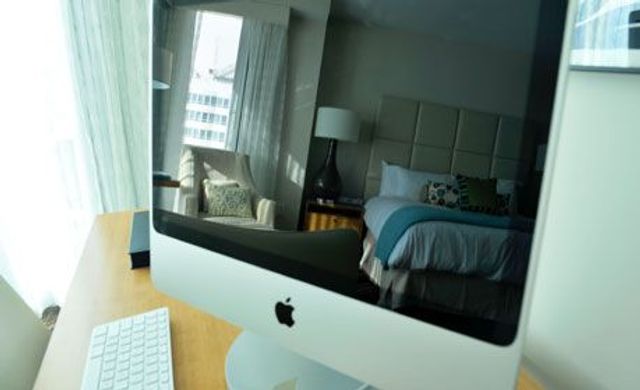 Die „Stairway to nowhere“ ist auch heute wieder in Betrieb: im Aufzug kann man wieder auf „Mezzanin“ drücken; aber nicht viele halten in dem toten Stockwerk an, um freiwillig eine lange Treppe herunterzusteigen. Heute präsentieren die Damen lieber ihre mit Silikon aufgefüllten Körper auf Cabanas und Liegeflächen an der überdimensionierten Poollandschaft. Oder sie hängen an der großen Bar mit einem Boden aus blau leuchtenden LED-Birnen in der Lobby ab, in der Hoffnung, P.Diddy kommt vorbei. An der Decke hängen Glitzerlüster vom chinesischen Documenta-Künstler Ai Wei Wei (die pro Stück eine Million Dollar gekostet haben) und an der Rezeption steht eine Skulptur von Yves Klein. Viel Farbe und Licht also, im Gegensatz zu den Gästezimmern, die überraschend langweilig, weiß und i-booking aussehen.