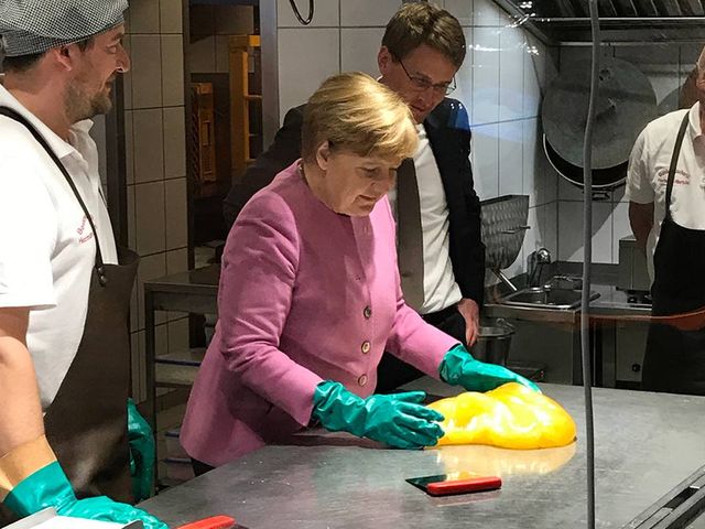 Offiziell ist das ein Foto von ihrem Besuch in Hannover auf der »Ideenexpo«. Aber die Botschaft ist klar: Wer die EU nach dem Brexit übernehmen möchte, muss sich mit Wiederbelebung auskennen.