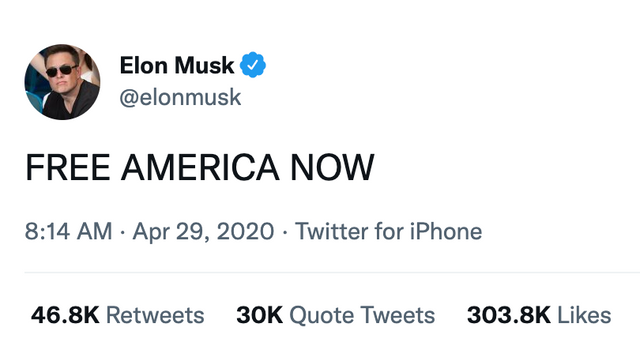 Elon Musk prophezeit im März 2020: »Basierend auf den aktuellen Trends wird es Ende April nahezu null Corona-Neuinfektionen in den USA geben.« Laut der New York Times gab es am 29. April 2020: