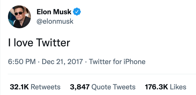 Im Dezember 2017 schreibt Elon Musk, er liebe Twitter. Was kommentiert der Unternehmer unter seinem eigenen Tweet?