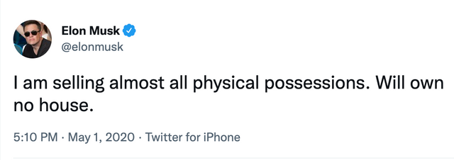 Er werde allen physischen Besitz veräußern, kündigt Elon Musk an. Mit welcher Einschränkung?
