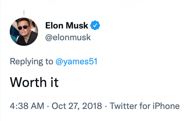 »Das war es wert«, tweetet Elon Musk. Worauf bezieht er sich?