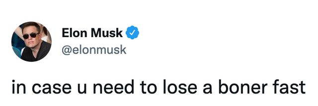 Am 23. April tweetet Elon Musk ein Foto, mit dem Hinweis, dass es helfe »für den Fall, dass ihr schnell eine Erektion loswerden müsst«. Was sieht man darauf?