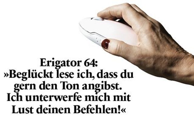 Erigator 64, im Ruhestand, 172 cm, 78 Kilo, aus dem Alpenvorland, hatte mein Profil gründlich missverstanden. Aus dem Wort selbstbewusst las er heraus, dass ich als Domina geeignet wäre. Er mailte: »Beglückt lese ich, dass du gern den Ton angibst. Ich unterwerfe mich mit Lust deinen Befehlen. Bin gern dein Schüler oder Sklave. Verfüge über mich. Dein demütiger Erigator.«
