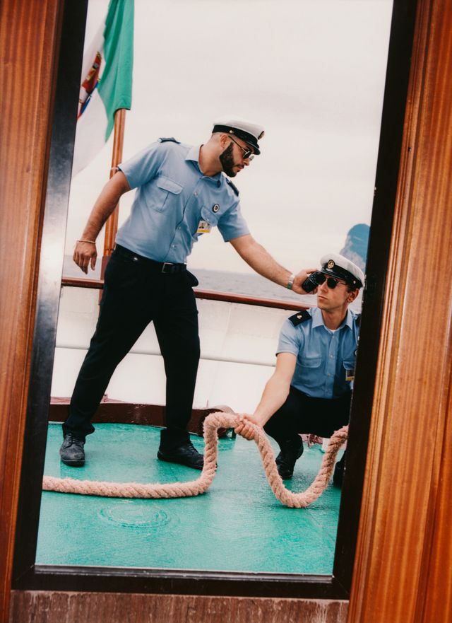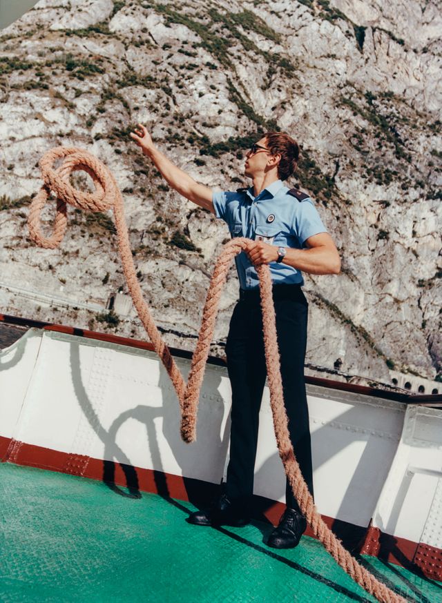 28. Juli 2018Aus Heft 30/2018KosmosAuf dem SonnendeckKaum jemand trägt Sonnenbrillen so souverän wie Italiener in Uniform. Die Crew der Gardasee-Fähre »Italia« hat für uns die Neuheiten der Saison anprobiert.Fotos: Francesco Nazardo Galionsfigur: Sonnenbrille mit runden Gläsern, von Porsche Design.Stets reflektiert: Sonnenbrille mit verspiegelten Gläsern, von Emporio Armani.Ringe über den Augen: Visierbrille von Porsche Design (links), Brille privat (rechts).Seilschaft: Sonnenbrille von Boss.Seeblick: Sonnenbrille mit Horn-Optik, von Joop!Leichtmatrose: Sonnenbrille mit lederbezogenen Bügeln, von Calvin Klein 205W39NYC.Steuervorteile: Visierbrille von Porsche Design (links), Sonnenbrille mit verspiegelten Gläsern von Emporio Armani.Ganz Ohr: Sonnenbrille mit runden Gläsern von Porsche Design (links), Sonnenbrille mit geflochtenen Lederbügeln von Tod's (rechts). Vorheriges Bild Nächstes Bild Aus Heft 30/2018KosmosStilModeItalienSonnenbrilleStartseite > Themen > Kosmos > Auf dem Sonnendeck