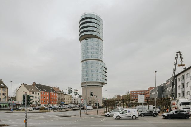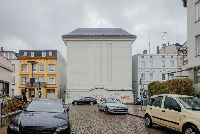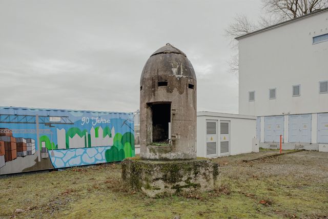 So taucht er jedenfalls nun in der grandiosen Fotoserie auf, die Niklas Grapatin zwischen März 2024 und März 2025 von Hochbunkern im ganzen Land gemacht hat. Die meisten davon geben allerdings deutlich weniger schillernde Erscheinungen ab. Gemeinsam ist ihnen, dass man sie nach dem Krieg nicht einfach abreißen oder wegsprengen konnte, dafür waren sie schlicht zu massiv. Man musste lernen, mit ihnen zu leben. Was sie immerhin zu starken Sinnbildern jener Vergangenheit macht, aus der sie stammen. Manche wurden zu Wohnhäusern umgebaut, manche wurden mit Wohnhäusern überbaut, manche wurden von vornherein so gebaut, dass sie Wohnhäusern ähneln – zur Tarnung und damit sie sich ins Stadtbild einfügen.