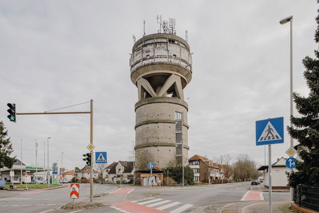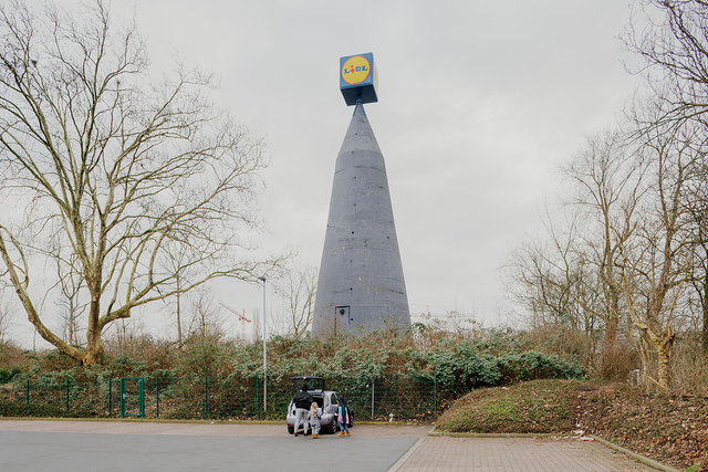 Eigentlich ist Niklas Grapatin ein Spezialist für Porträtfotografie, hier musste er sich der Mittel von Architekturfotografen bedienen: einem speziellen Objektiv, um stürzende Linien zu vermeiden, und bedecktem Himmel für neutrales Licht. So bekommen die verschiedenen Bunker etwas Monumentales und die Fotos etwas Typologisches – ein bisschen wie in den Bilderserien, in denen einst Bernd und Hilla Becher die Zechentürme des Ruhrgebiets systematisiert haben. Wobei Grapatin sie zugleich demonstrativ in ihrem heutigen Alltag eingebettet zeigt: Autos parken davor, Menschen laufen vorbei, das Leben in der Bundesrepublik geht rund um sie herum weiter.