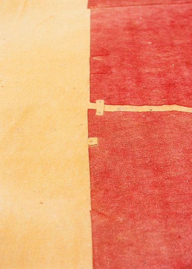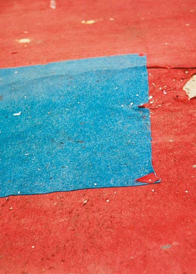 Yto Barrada: Ja, das sind Nahaufnahmen vom Filzteppichboden eines Zirkus in Tanger. Der Boden dort sieht aus wie eine Collage oder Montage. Die Farben und die Verknüpfung der verschiedenen Stücke sind fantastisch, oder? Diese Böden werden ständig ausgebessert. Da wird nichts weggeworfen, sondern immer nur ein neues Teil dazugefügt oder drangeklebt. Das ist, wie wenn man ein Loch im Pullover hat und einen Stoffrest draufnäht.