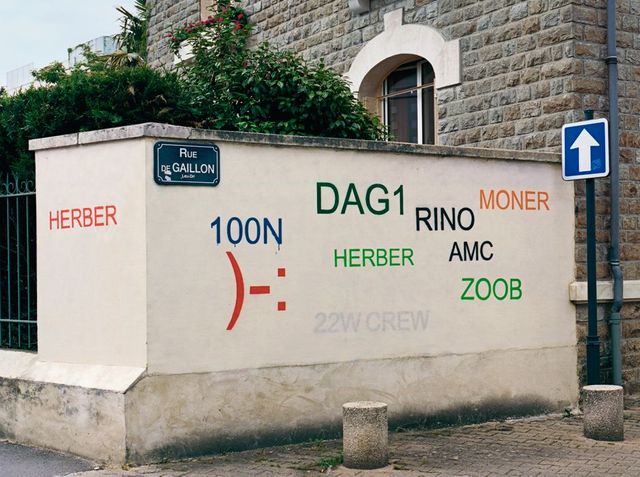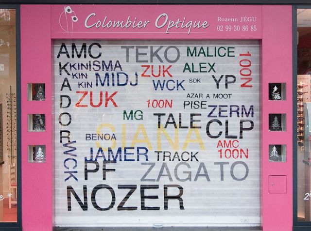 Der französische Künstler Mathieu Tremblin nun hat in Rennes, Arles, Berlin und anderen Städten ein paar entstellte Wände umgestaltet und zumindest ein Manko beseitigt: Anstelle des Graffiti-Durcheinanders findet sich dort nun gepflegtes, für jedermann lesbares Grafikdesign. Er hat die Tags also übersetzt – und sich damit auch lustig gemacht über die Graffitiszene. Besonders revolutionär wirken die kryptischen Codes nämlich nicht mehr, wenn sie so sauber an der Wand stehen: DAG1, grilz, TU140. Wie kommt Tremblin dazu, wo er doch selbst dieser Szene entstammt? Und welchen Sinn haben die Tags überhaupt?