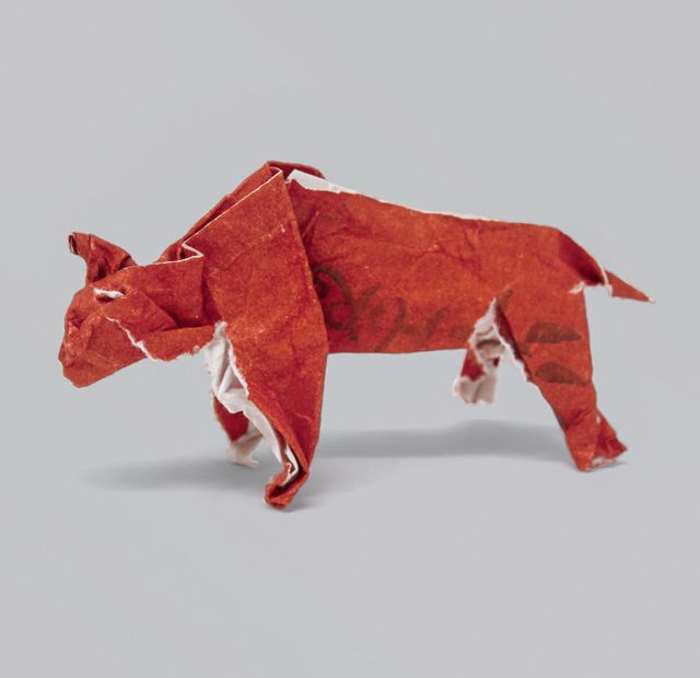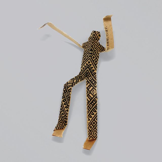 Stattdessen gibt es eine andere Sitte: Als Anerkennung für Kellner und Küche lassen Gäste in japanischen Restaurants gern kleine Kunstwerke zurück, gefaltet aus der Papierverpackung von Essstäbchen. Der heute 27-jährige Künstler Yuki Tatsumi hat während seines Studiums in Tokio die Tische in einem traditionellen japanischen Restaurant gewischt. 2012 fiel ihm dabei zum ersten Mal ein kunstvoll gefaltetes Papier auf, das ein Kunde zu einer aufwendigen, abstrakten Form gerollt hatte. Tatsumi nahm es mit. Bald hatte er Papier in Form von Menschen, Hunden und Schlangen aufgelesen, von Autos und Häusern, eine Art Diorama des Alltags. Tatsumi war begeistert. »Viele dieser Teile machen die Menschen eher unbewusst, sie falten drauflos«, sagt er. Er begann, die kleinen Wunderwerke zu sammeln. Manche der Figuren sind so raffiniert, dass man sie nur hinbekommt, wenn man lange übt. »Besonders habe ich mich immer über Figuren gefreut, die aussehen wie Menschen.«