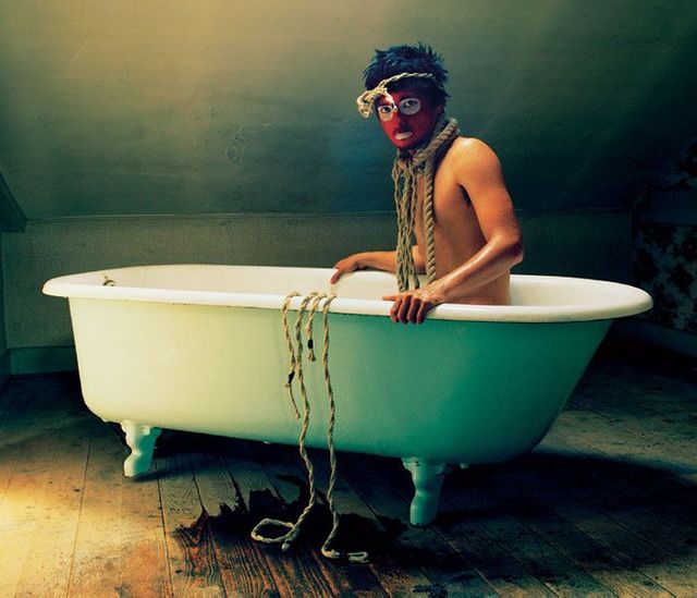 Als würde er gleich abheben, so glühend leuchtet der Fudschijama am Horizont. Nur: Wie kommt diese alpenländische Dorfkulisse im Vordergrund auf das Bild? Ein anderes Foto zeigt einen jungen Mann in der Badewanne, der aussieht wie ein Pantomime aus einem japanischen Kabuki-Theater. Seile ranken sich wie Tentakeln um seinen Körper. Der Mann in der Wanne heißt David Favrod. Er ist Fotograf, und dass er etwas ratlos dreinschaut, könnte damit zu tun haben, dass er nicht weiß, wohin er gehört: nach Japan, wo er geboren ist, oder in die Schweiz, wo er aufwuchs und heute lebt? Mit der Kamera ist Favrod der immerwährend spannenden Frage nachgegangen: Wo ist Heimat für jemanden, der keine hat, weil er zwischen zwei Welten gefangen ist? Und was bedeutet Heimat in einer Zeit, in der immer mehr Menschen nicht mehr dort leben, wo sie groß wurden?