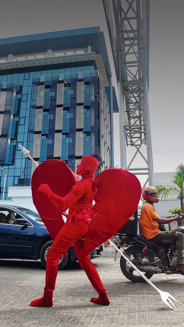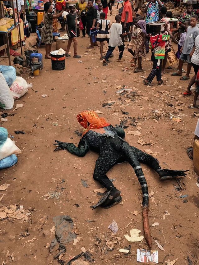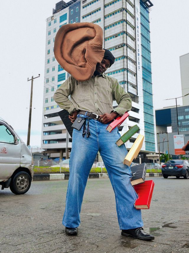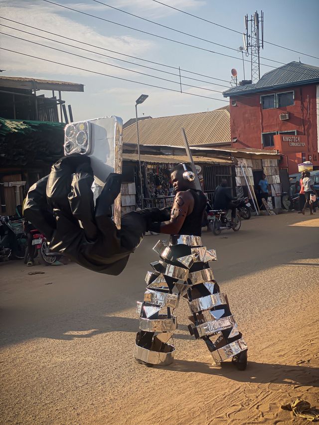 Ich habe zum Beispiel ein Ohr angefertigt, das viel größer ist als mein Kopf. Das Ohr habe ich an einem Eisendraht befestigt, den ich um meinen Kopf gewickelt und dann unter einer Mütze versteckt habe. So bin ich durch mein Viertel gelaufen. Das Ohr sollte ausdrücken, dass der Gesellschaft in Nigeria nicht richtig zugehört wird. Die Menschen demonstrieren immer wieder gegen Korruption oder manipulierte Wahlen. Aber die Politiker reagieren nicht darauf. Ich hoffe, dass so viele Menschen wie möglich über diese Probleme sprechen, nachdem sie mich gesehen haben. Und das nicht nur in Enugu. Jeden meiner Auftritte filmt meine Schwester, und ich lade die Videos auf Instagram und TikTok hoch. Dort habe ich mittlerweile Tausende Follower.