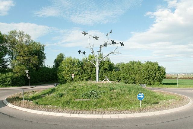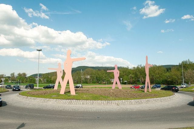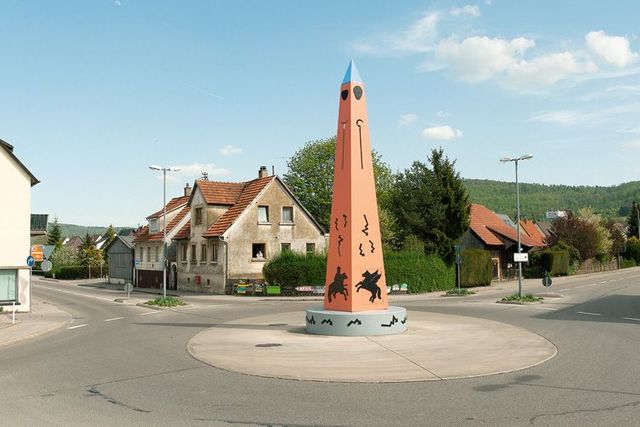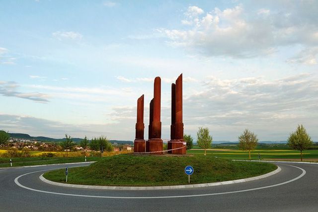 Kreiselkunst ist in Deutschland ein Phänomen der Provinz. Hochburg ist Baden-Württemberg, 164 Werke zählt die Website kunstimkreisverkehr.de dort, in Hessen 28, in Bayern 15, in Brandenburg nur eines. Große, runde Plätze, in deren Mitte Kunstwerke an historische Momente erinnern, gibt es in Städten natürlich bereits seit Jahrhunderten. Die Kolumbus-Statue auf dem Columbus Circle in New York erinnert an den großen Entdecker, die Siegessäule auf dem Großen Stern in Berlin an einen militärischen Sieg, der Obelisk am Place de la Concorde in Paris feiert die Freundschaft zweier Völker. Kreiselkunst dagegen entsteht überwiegend fernab von Metropolen, an Orten wie Mögglingen, Bochingen oder Lauterbach. Aus Motiven, die nur wenig mit Ruhmestaten zu tun haben.